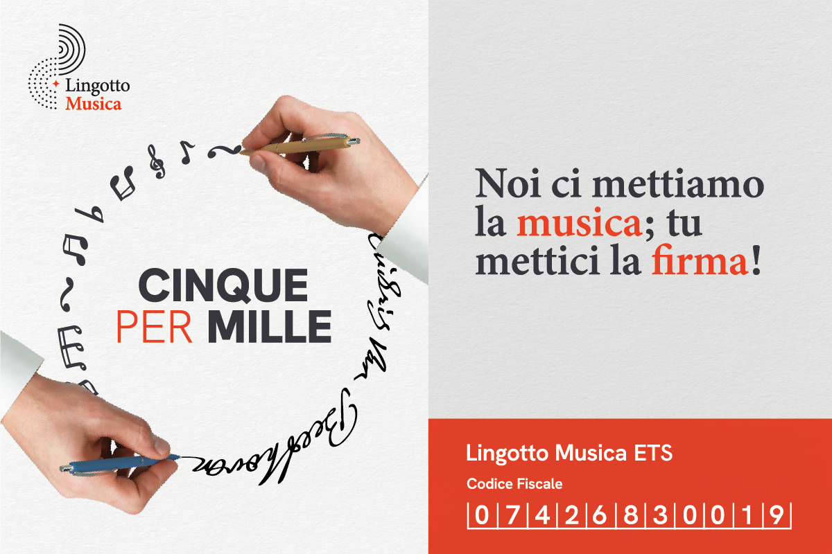 Con una semplice firma, oggi più importante che mai, puoi contribuire a scrivere un nuovo capitolo della storia di Lingotto Musica, sostenendo le stagioni concertistiche che dal 1994 ospitano il meglio della musica internazionale a Torino.