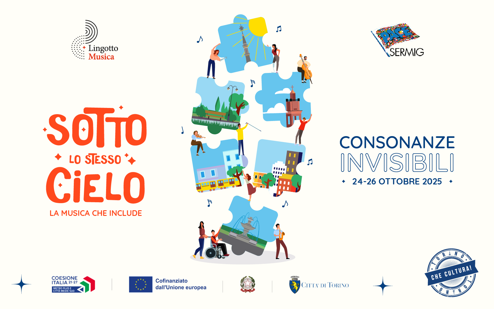 Sotto lo stesso cielo. La musica che include è un festival diffuso che intende portare la cultura musicale in periferia. Ideata da Lingotto Musica in coproduzione con Fondazione Sermig, la rassegna si articola in un lungo weekend di concerti, conferenze e altre attività negli ambienti dell’Arsenale della Pace, nei luoghi di cura, nelle chiese e nei mercati di prossimità dei quartieri torinesi Aurora e Barriera di Milano.